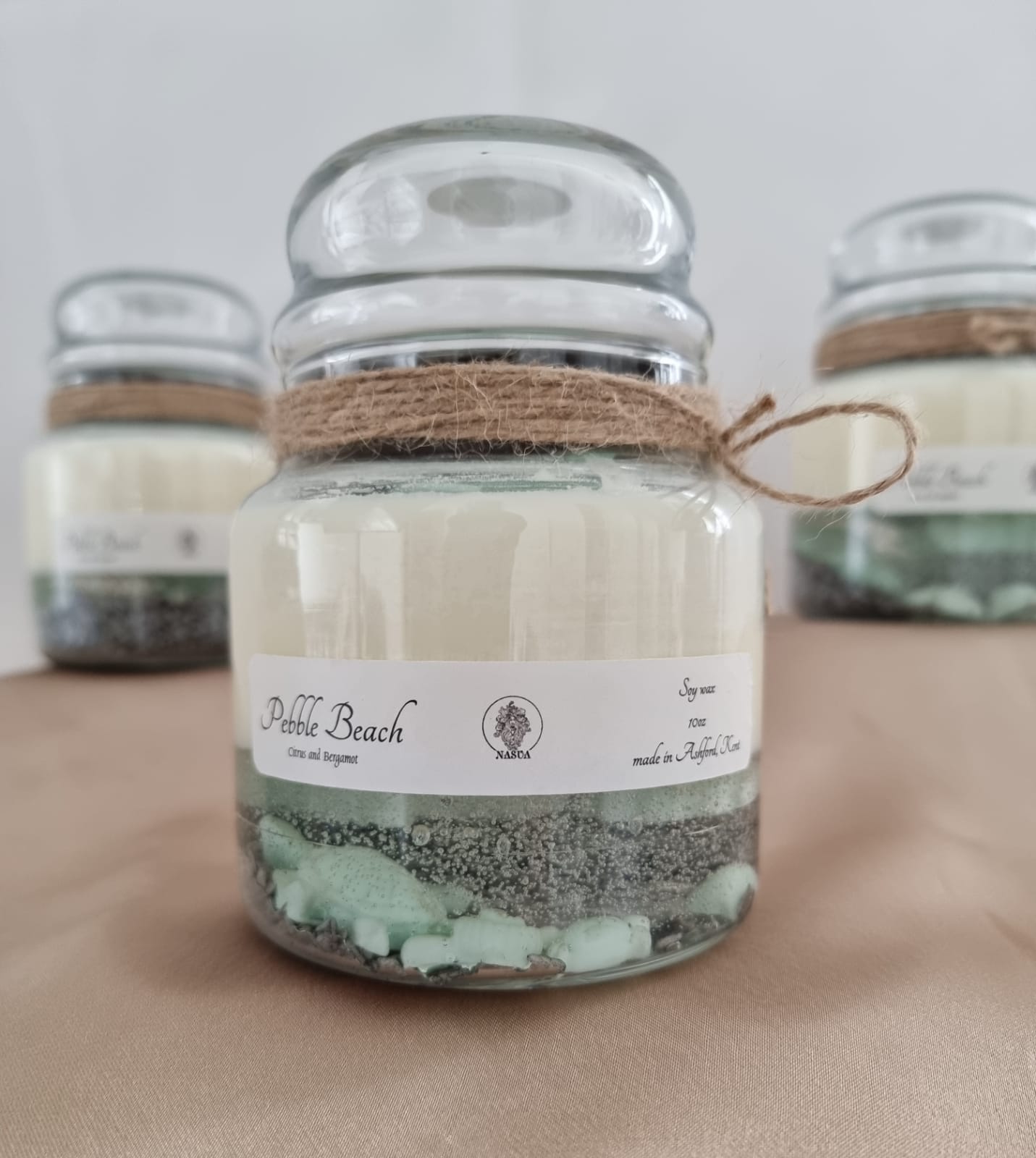 Take a holiday with Pebble Beach. Entirely made of wax, Pebble beach looks like the ocean with marine creatures swimming in its depth. See if you locate the turtle swimming happily towards shore.